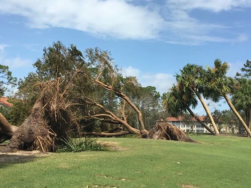Once the damage on the golf course was fully assessed, it was at that point we realized cleanup would take weeks, while full restoration would take months.  The hardscape of Royal Wood will forever be changed, when we lost approximately 221 trees, 131 scrubs and 512 ficus hedging along maintenance, holes eleven and fourteen, totaling in all 864 plants.  To date, we have removed 60 semi-trucks, loaded with debris, that has been taken to a FEMA horticultural dump out in Ave Maria with many more to go.  We have also planted 116 new trees of various species which respresents half of the trees lost.